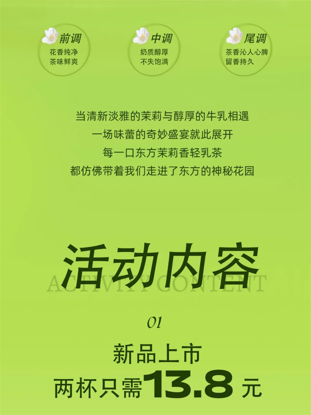重磅上新!东方茉莉香,健康轻乳茶!